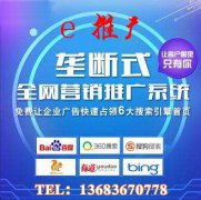 e快推全網推廣系統為您解決不會做,做不好,沒人做的難題 搜索營銷推廣 主流搜索引擎,占領電腦端,手機端,iPad端,快速獲取關鍵詞排名 站群推廣節流 系統每天在高權重媒體上為企業生...